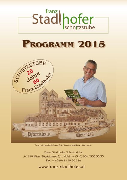 Lesen Sie im Inneren des Blattes, alles über das große Jubiläumsjahr der Schnitzstube Stadlhofer und was es alles neues gibt. Feiern Sie mit uns gemeinsam 3 Jubiläen auf unserem Fest Ende Mai 2015 in der Schnitzstube in Wien.