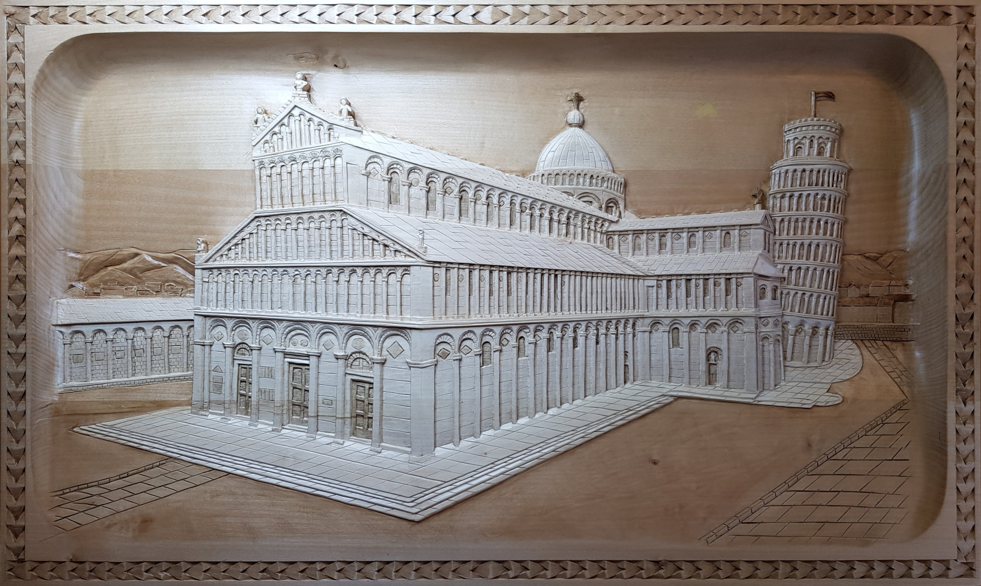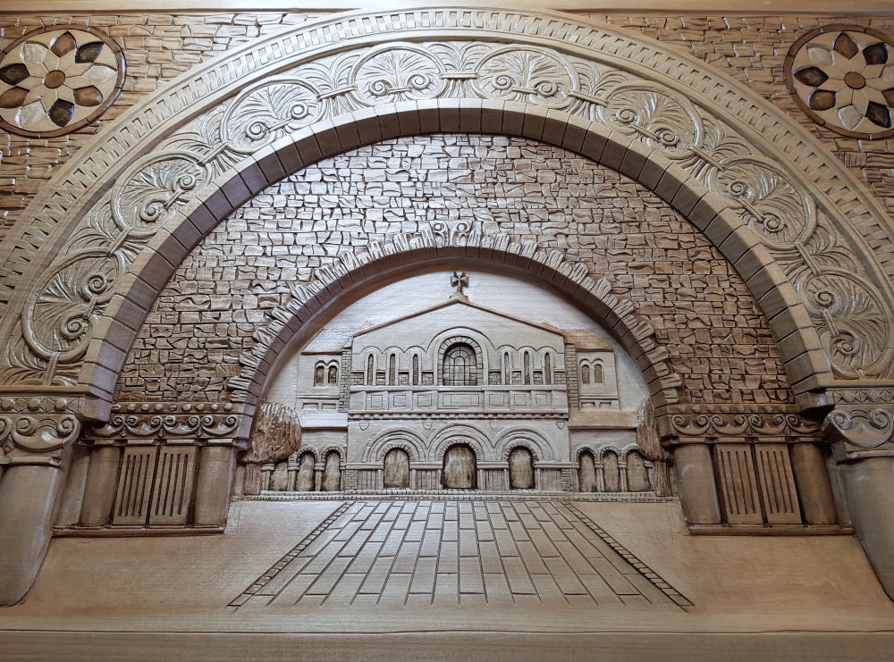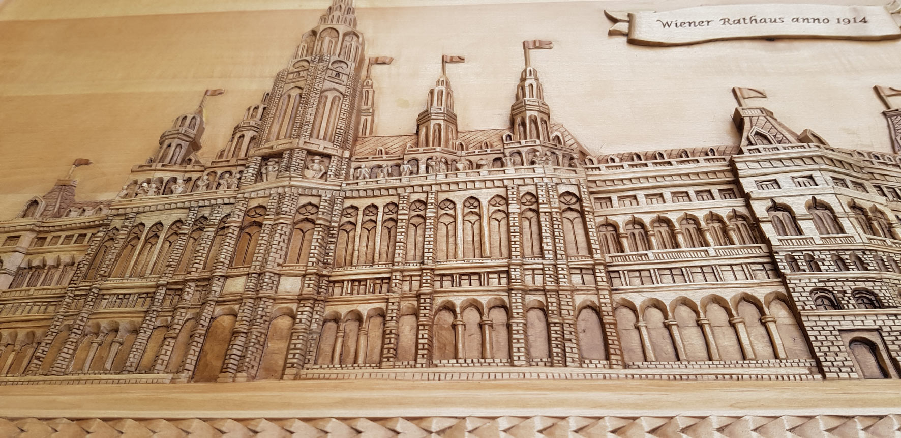 2016 begann Walter bei uns den Kerbschnitt zu erlernen. Sein Ziel war es, den Herbstboden – ein Übungsbrett mit lauter Blättern in Relief – schnitzen zu können. Mehrmals im Jahr besuchte er unsere Kurse in Wien und arbeitete sich durch alle unsere Grundkurse und viele weitere. Nachdem er das Schnitzen des Herbstbodens erlernt hatte, spezialisiert sich Walter auf Perspektiven. Immer schwieriger und detailverliebter wurden seine Motive.