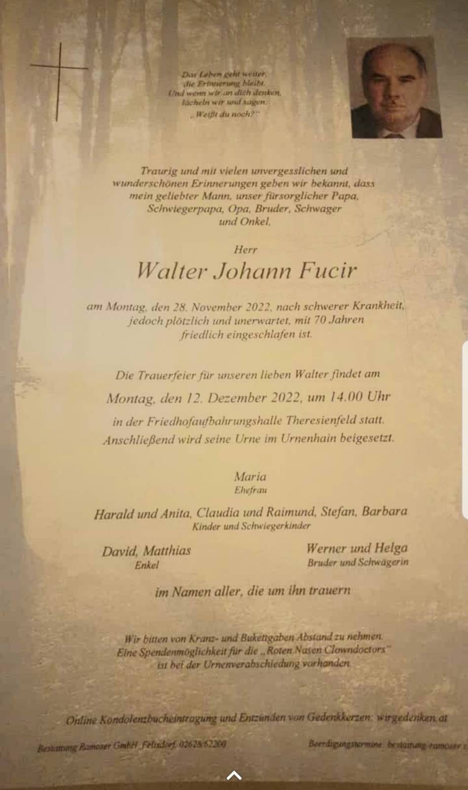 Walter Fucir aus Theresienfeld starb nach schwerer Krankheit