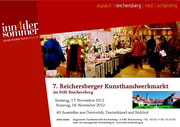 … im wunderschönen Stift Reichersberg am Inn findet bereits zum 8. Mal der traditionelle Kunsthandwerksmarkt statt, den Franz mitorganisiert.